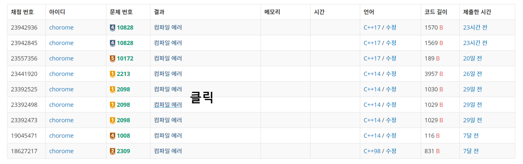 백준에서 소스 코드 채점했을 때 컴파일 에러가 뜨는 경우가 있습니다.