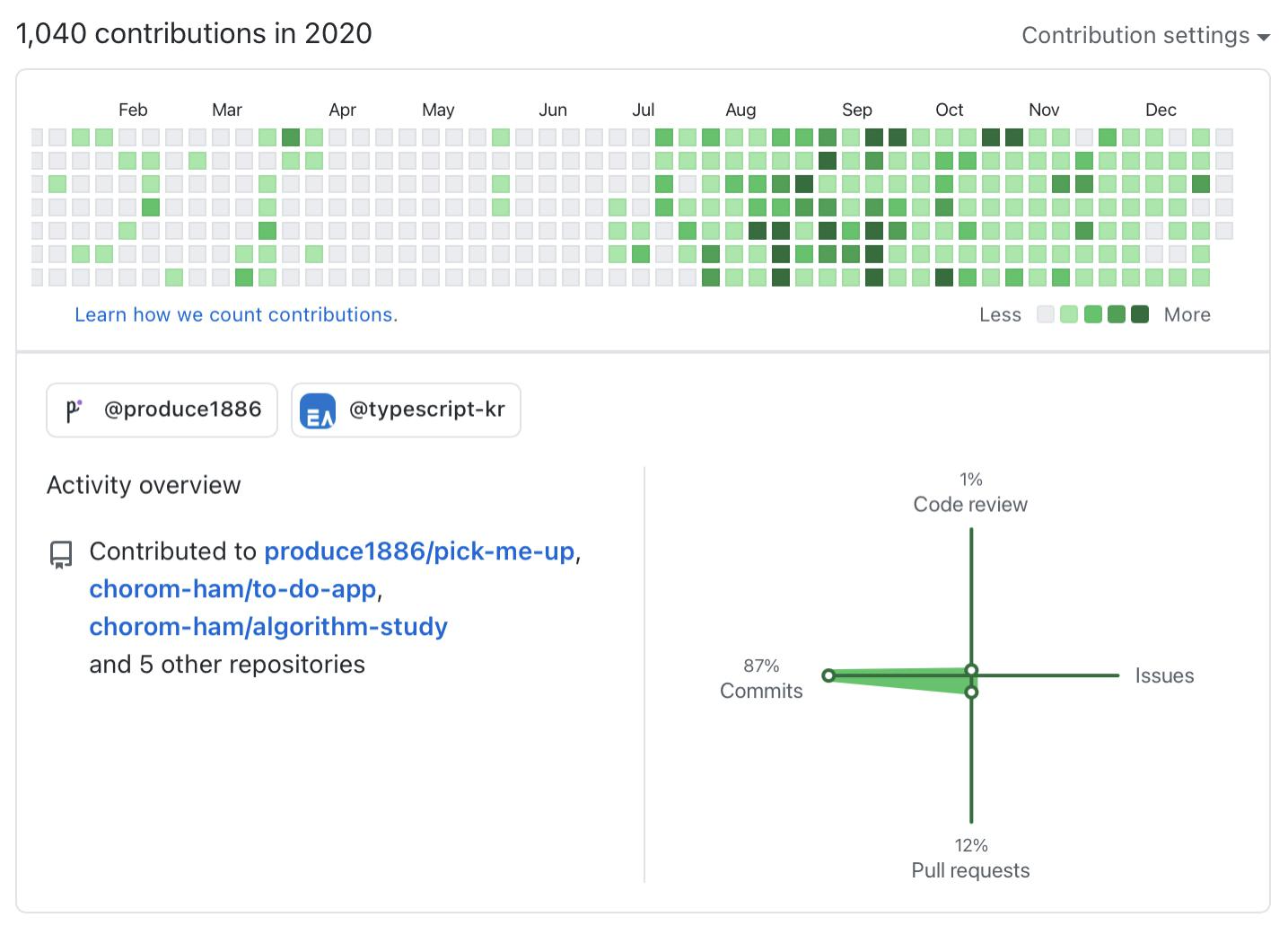 마음의 여유를 되찾고 나서 뭐든 다시 시작해야겠다 싶었다. 픽미업 프로젝트 개발을 다시 시작했고, Node.js 공부와 쇼핑몰 사이트를 만드는 프로젝트를 시작했다. 일일 커밋에도 도전했다.