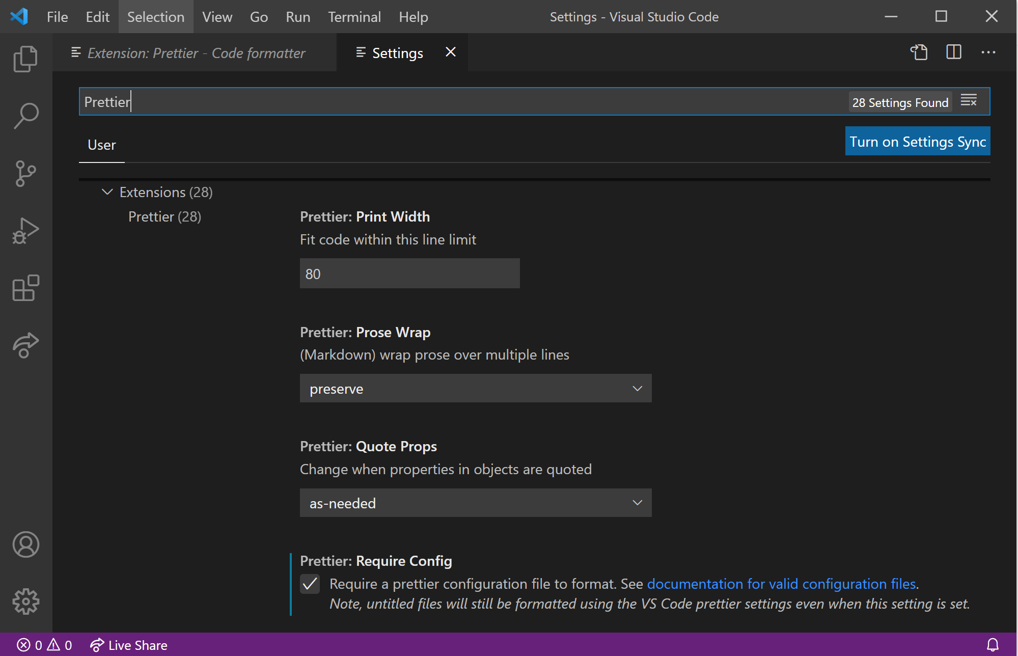 두번째 방법은 Prettier configuration 파일을 통해 관리하는 것입니다.