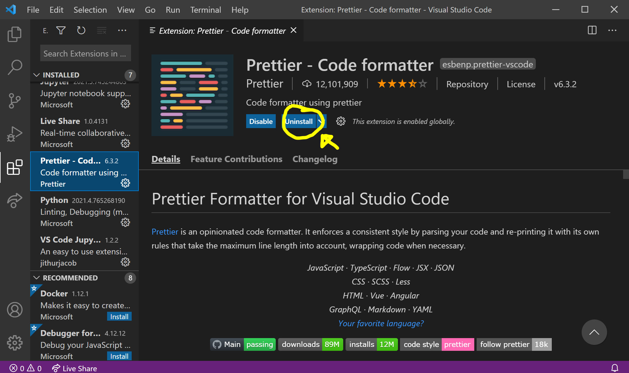 저는 이미 설치되어 있어 "Uninstall"이 뜨지만 처음 설치하신다면 "Install"이라고 뜨실 겁니다. 해당 버튼을 눌러 설치하시면 됩니다.